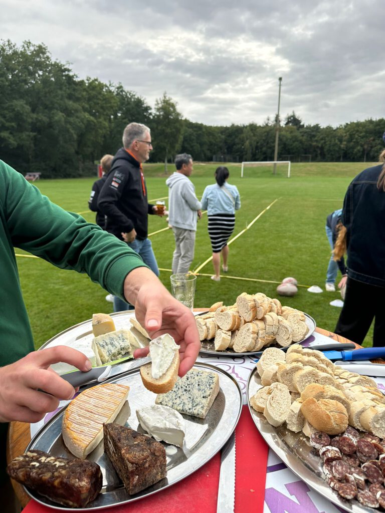 This wasn’t your typical game of pétanque: some brought their own boules, but those could stay in the bag — we played with rugby balls instead. The matches were held on the field, and there was plenty of baguette, cheese, sausage, pastis, and beer to keep everyone well-fed and hydrated.