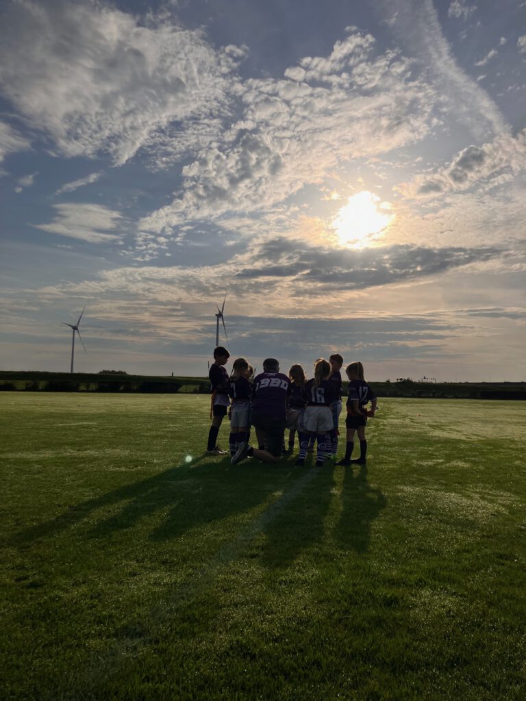 Op een prachtige nazomer dag stonden 10 turven te trappelen voor hun eerste matchday! Dit jaar hebben we weer een een flinke aanvulling vanuit de Guppen, voor zo’n 10 kinderen was dit hun allereerste rugby wedstrijd. We startten met gezamenlijk warming-up olv Evert-Jan en een teambespreking. In het begin van de wedstrijd was het even wennen aan de regels en de tegenstander, maar onder begeleiding van Evert-Jan pikten ze het snel op.