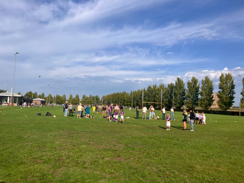 On a beautiful late summer day, 10 enthusiastic Turven were ready for their first match day! This year we’ve had a great influx from the Guppen, and for about 10 kids, it was their very first rugby match. We started with a joint warm-up led by Evert-Jan and a team talk.