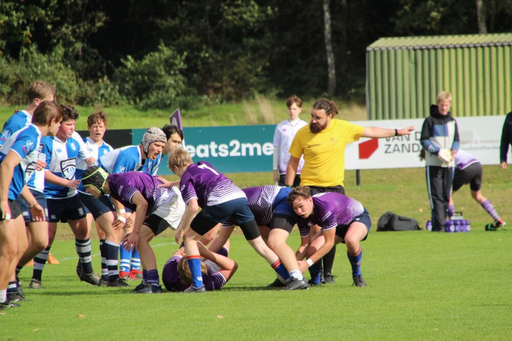 Ondanks de herfststorm en code geel ging de Bondsdag in Wageningen gewoon door, met goed bespeelbare velden en twintig enthousiaste benjamins van RC Wageningen. Ze speelden spannende wedstrijden tegen Rotterdam, Amsterdam en Tilburg en genoten van een gezellige, leerzame dag vol rugby en plezier.