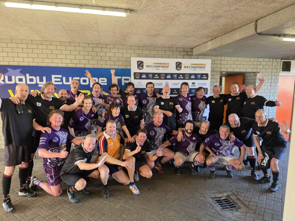 During halftime of the rugby international between the Netherlands and Spain, the artificial turf of the National Rugby Centre was flooded with purple and black shirts from Wageningen and Alkmaar (joined by RC Amsterdam). Last year, the Wageningen T1 touch rugby players won the national championship at the Olympic Stadium, exactly 30 years after the last national title of the RCW women’s team. It therefore came as no surprise that Rugby Netherlands had invited the Wageningen T1 ladies and men to give a demonstration of T1 rugby. The Alkmaar squads (both clubs each formed two teams and therefore played a match on each half of the field) looked somewhat older than the Wageningen side, but proved perfectly capable on the stadium’s artificial turf. Nevertheless, both RCW teams turned out to be stronger, although the score in touch rugby is not the most important thing.